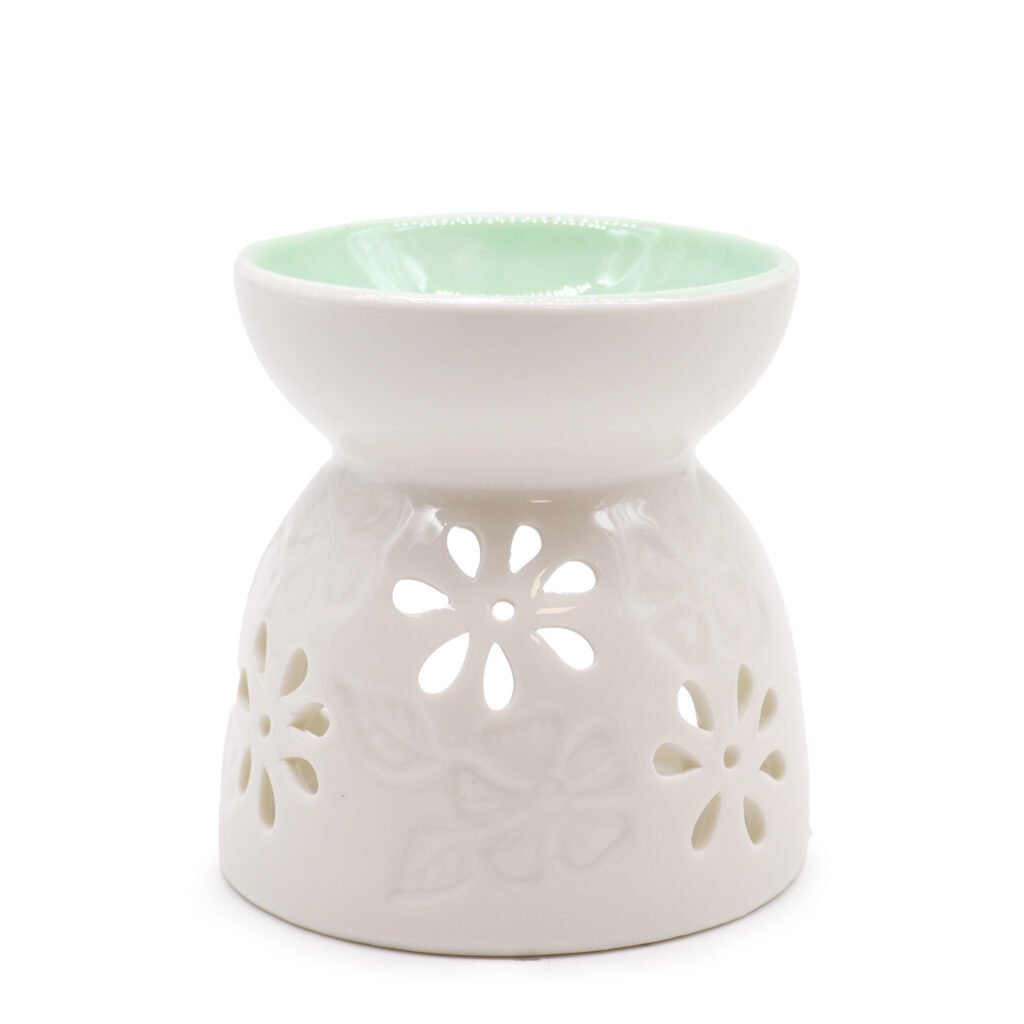 Šie keraminiai aliejų degikliai pagaminti iš aukščiausios kokybės keramikos, užtikrinant prabangų ir patvarų produktą. Naudojimas ir privalumai: Tinka kvapų aliejams ir vaško plytelėms Elegantiška balta keramika puikiai dera bet kuriame kambaryje Kiekvienas degiklis turi gražų dekoratyvinį raštą – gėlių, žvaigždžių arba laumžirgių, pro kurį šviečia žvakių šviesa, sukurdama raminančią atmosferą Matmenys: 8×9,5 (cm)