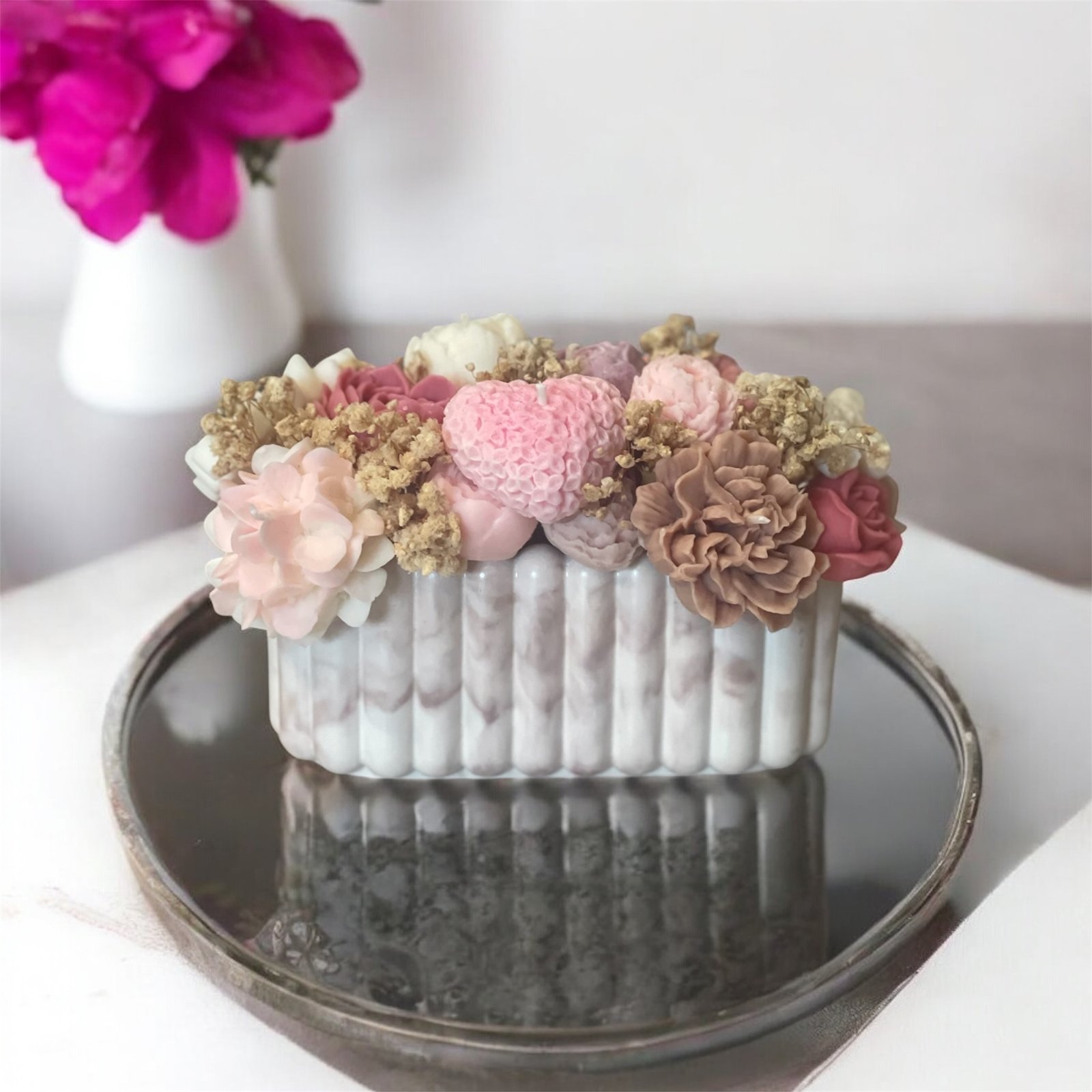 Praktiška ir išskirtinė dovana, kuri ne tik džiugins akį, bet ir ilgam išsaugos jaukų, šiltą prisiminimą apie JUS. Tai elegantiškas interjero akcentas, pripildantis namus subtilaus aromato ir natūralaus grožio.