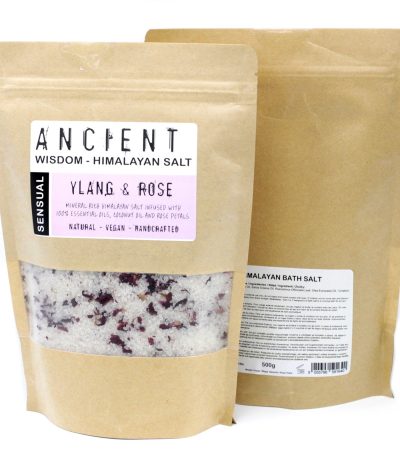 Himalayan Bath Salt Blend 500g – Sensual Sensual: Ylang Ylang eterinis aliejus ir rožių žiedlapiai + Kokosų aliejus